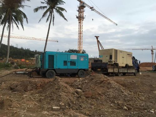 壽力(li)DPQ900柴油空(kōng)壓機息(xi)烽高鐵(tiě)站施工(gōng)現場